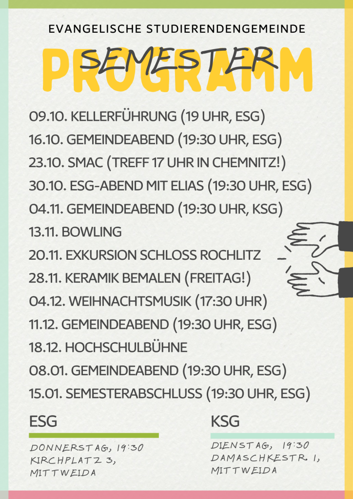 wir sind die ESG, die Evangelische Studentengemeinde in Mittweida.